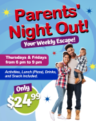 Includes 4 hours of supervised kids’ activities, snacks, and drinks.